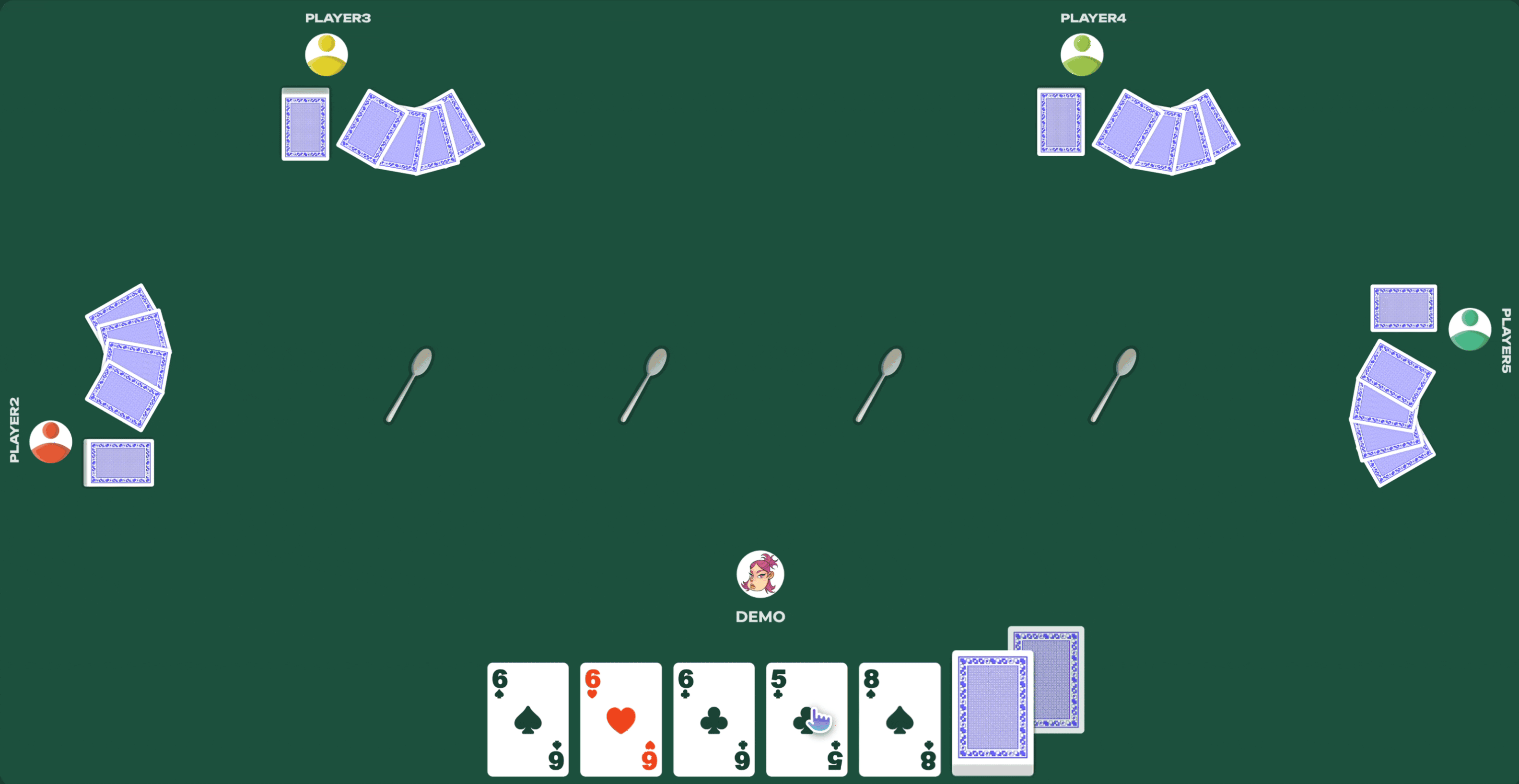 - Get a four of a kind, grab a spoon
